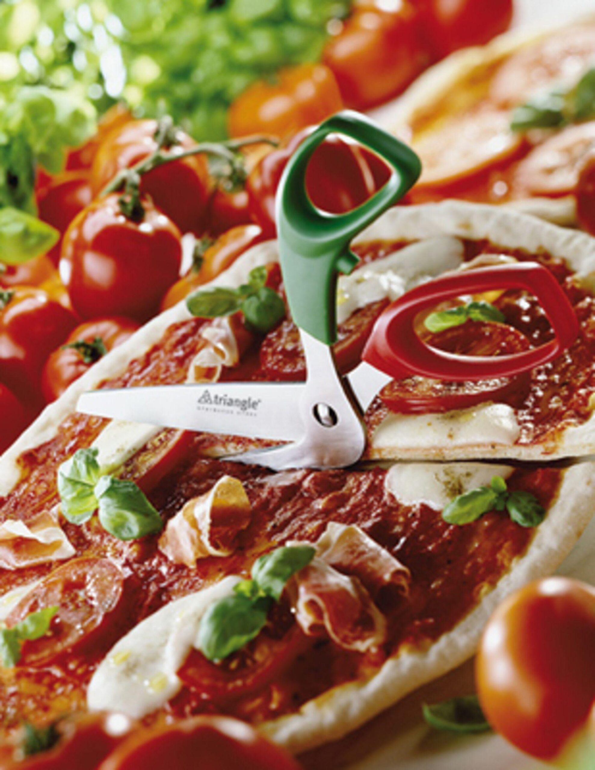 Cuts pizzas, tarts and cakes quickly and easily without destroying the covering Ergonomically angled scissor handle, so that your hands remain clean Hygienic and easy to clean; with suspension lug. Hardened stainless steel. The blades can be detached in one simple step and cleaned separately. Rustproof. Dishwasher-safe
