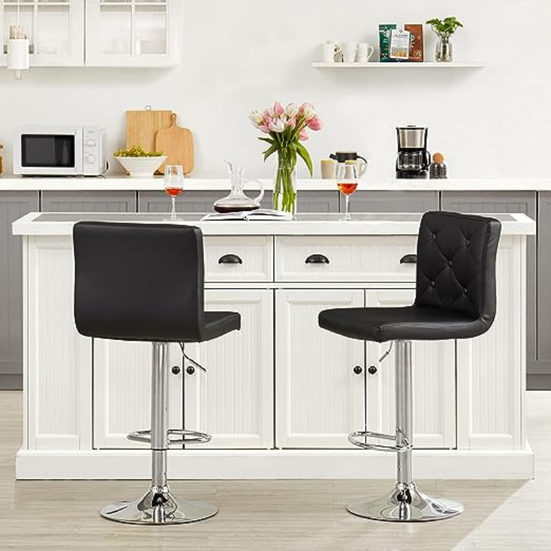 - The Stool Seat Makes a Difference: VECELO tall Barstools feature soft PU leather cushion and back filled with quality sponge, convenient footrest, sitting on the modern bar chairs offers you the unparalleled comfortable feeling. These kitchen island 360 swivel stools are not only good for pub bar , but also perfect for kitchen counter